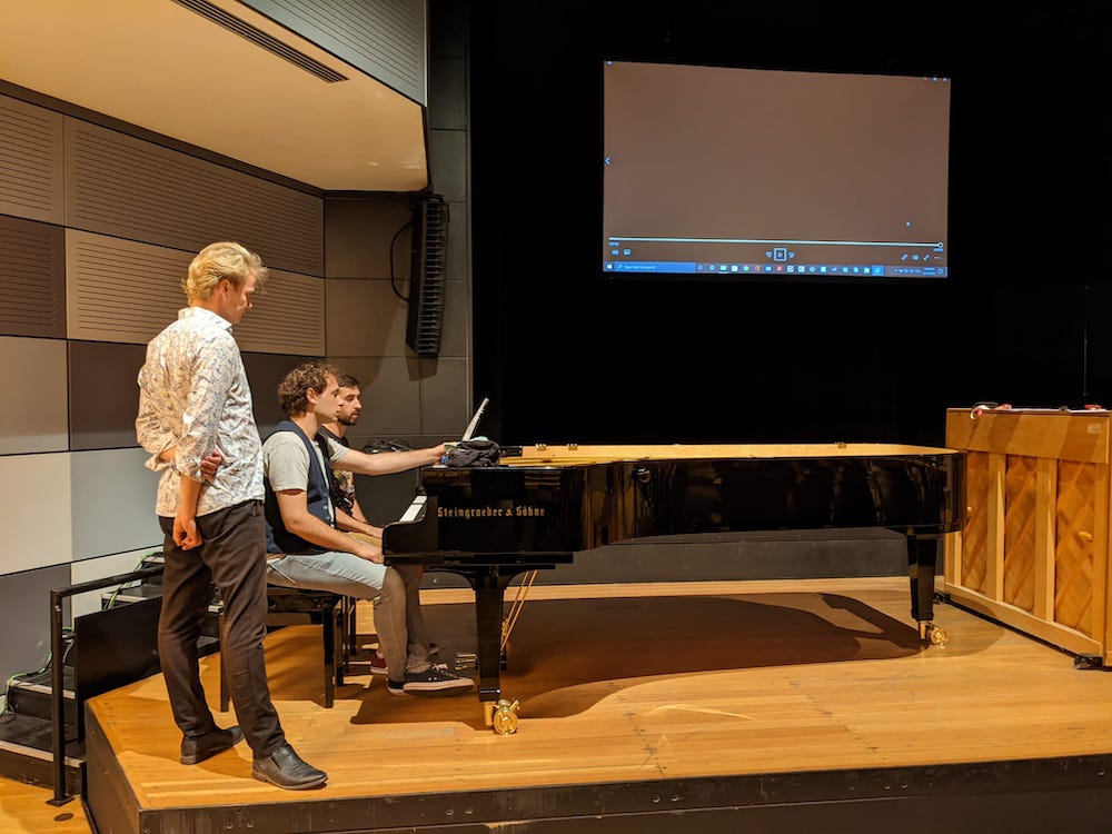 The concert held on August 13. in the concert hall of the Centrum (“Zentrum”) in Bayreuth (Bayreuth, Bavarian Germany) is part of a project in which students of the Department of Composition, Faculty of Hochschule für Musik und Theater Hamburg, in the class of professor Fredrik Schwenk, participated. At the workshop held as part of the Young Artists Festival (Junger Künstler Festival, Bayreuth), the composers wrote short pieces for two pianos and four-hands that were played along with the German silent film “Dr. Mabus”. The names of the composers are – Yixie Chen, Lara Martensen, Momčilo Petrović, Felix Tetz and Leonard Willscher.